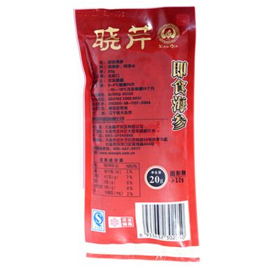 工藝簡介:以檢驗合格的大連鮮活海刺參為原料,經除臟,除沙嘴,煮制、發(fā)制、滅菌等工藝加工而成。口感筋道有彈性,開袋即食。